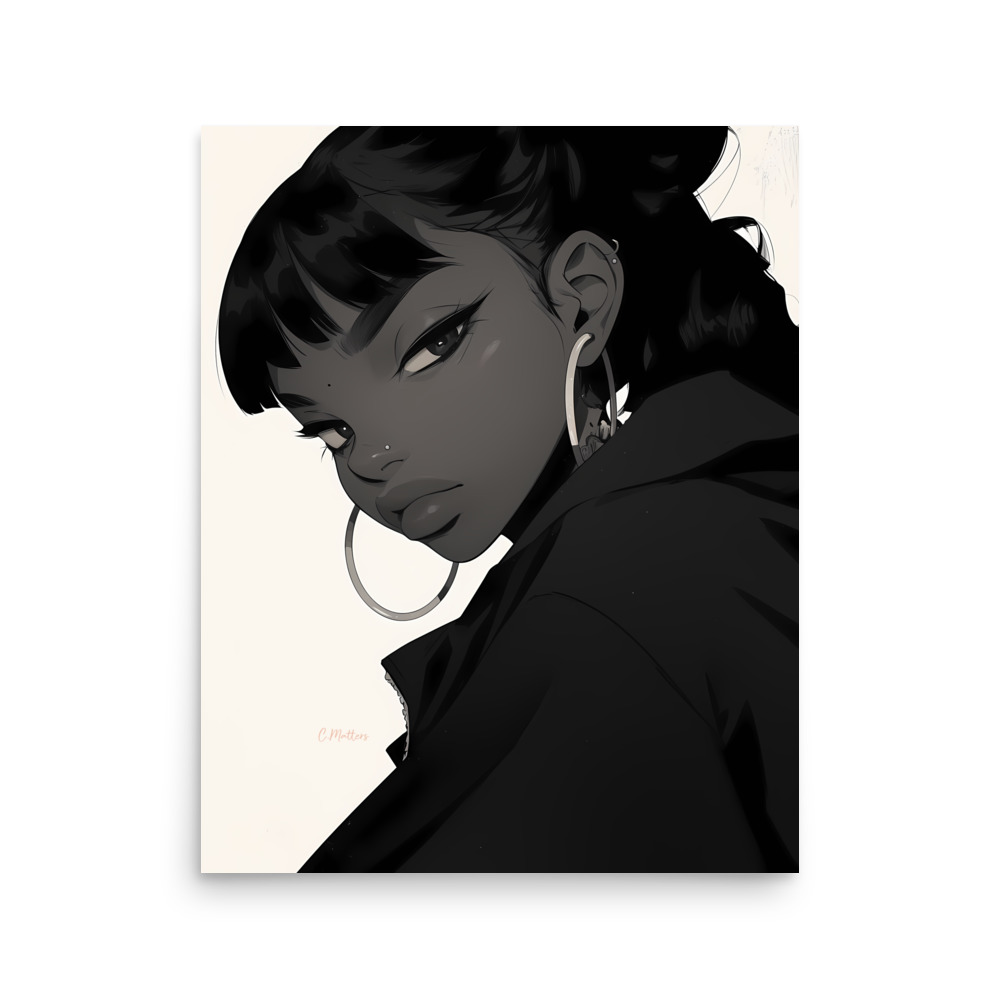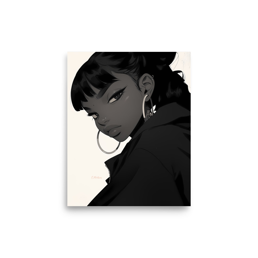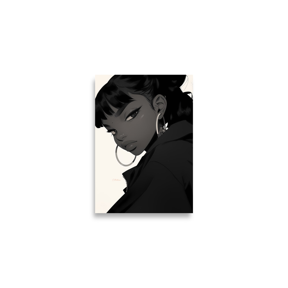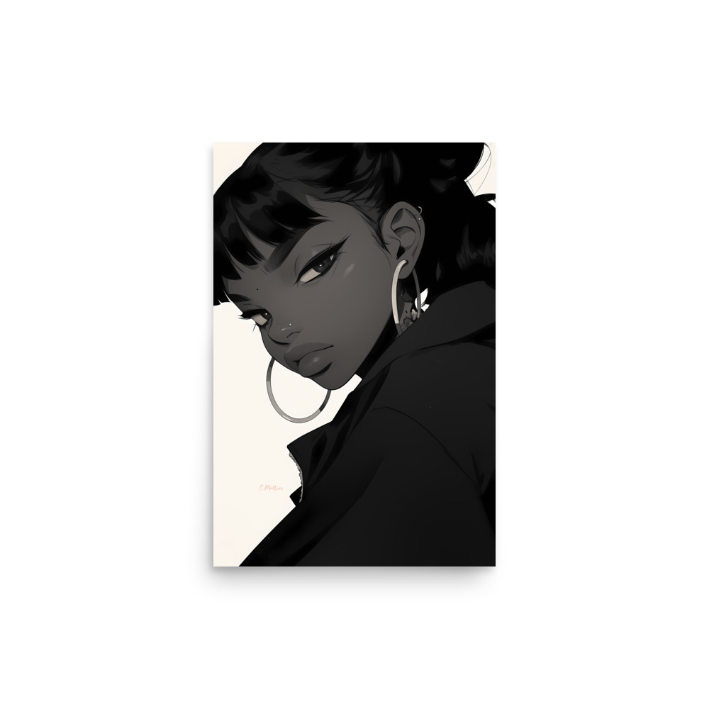 Serving face, mood, and main character energy. This black-and-white baddie brings serious vibes to your wall. Inspired by manga, made for the culture — she’s soft, bold, and not here to play. Perfect for your room, studio, or wherever you want the energy to match your aura.